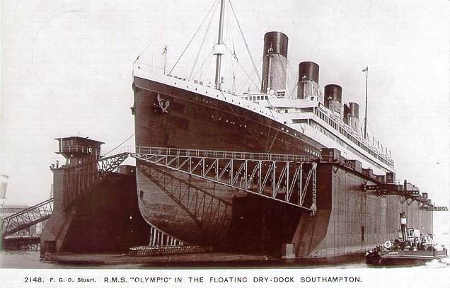 This is an image of the RMS Olympic in drydock.